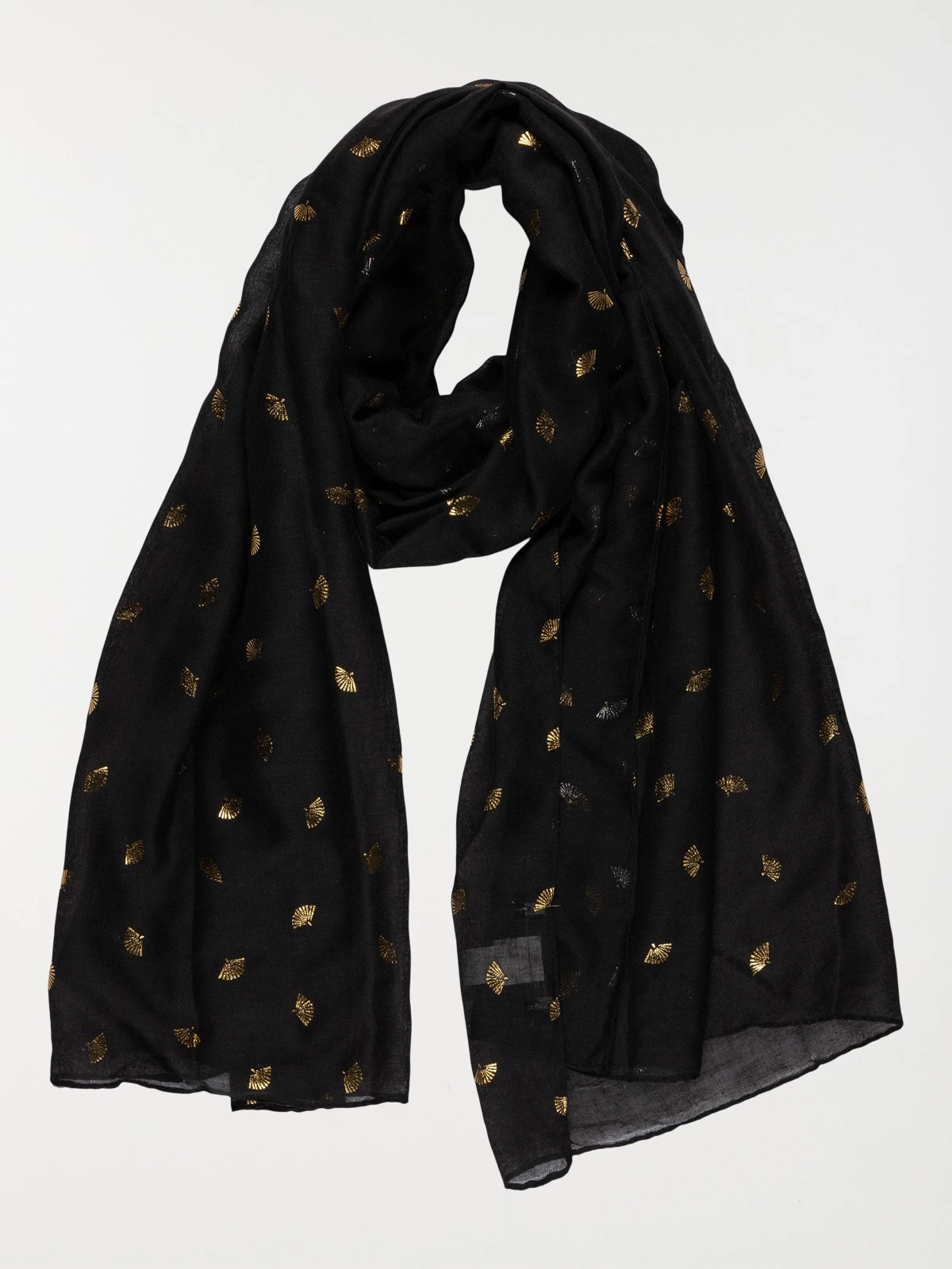 A la fois doux et agréable à porter, ce foulard femme trouvera sa place dans votre dressing ! On aime son motif fantaisie doré et sa couleur noire qui s’associe à tous vos looks.