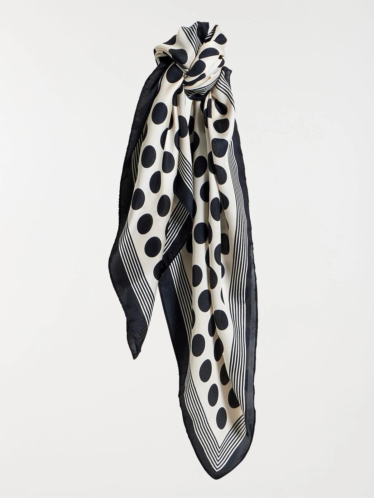Ce joli foulard femme est à porter sans modération cette saison. Ses imprimés et son coloris noir vont ajouter une touche de glamour à vos tenues estivales.