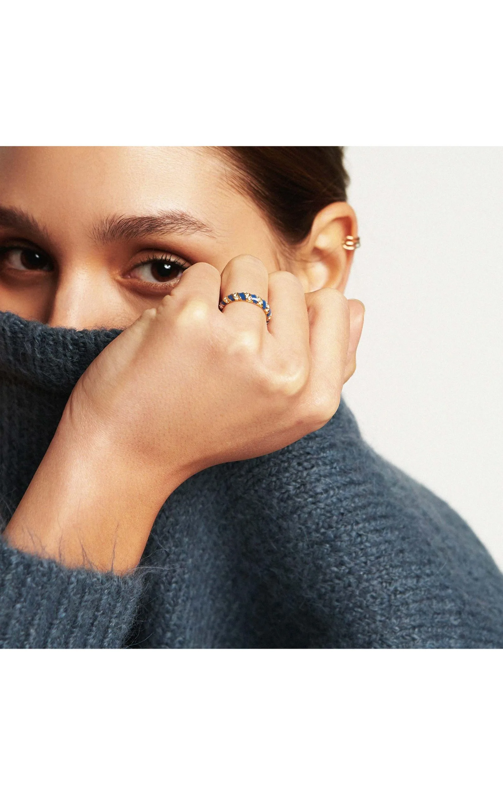 Cet hiver, vous allez succomber pour ces petits bonbons colorés et adorerez les accumuler selon votre humeur! Cette bague dorée à l’or fin 14 carats est entièrement pavée de strass effet diamant combinés en torsade avec de l’émail bleu saphire. On est fan de son look classique chic que l’on peut twister facilement en l’accumulant à votre doigt avec les autres couleurs. Une pièce immanquable pour cette saison.