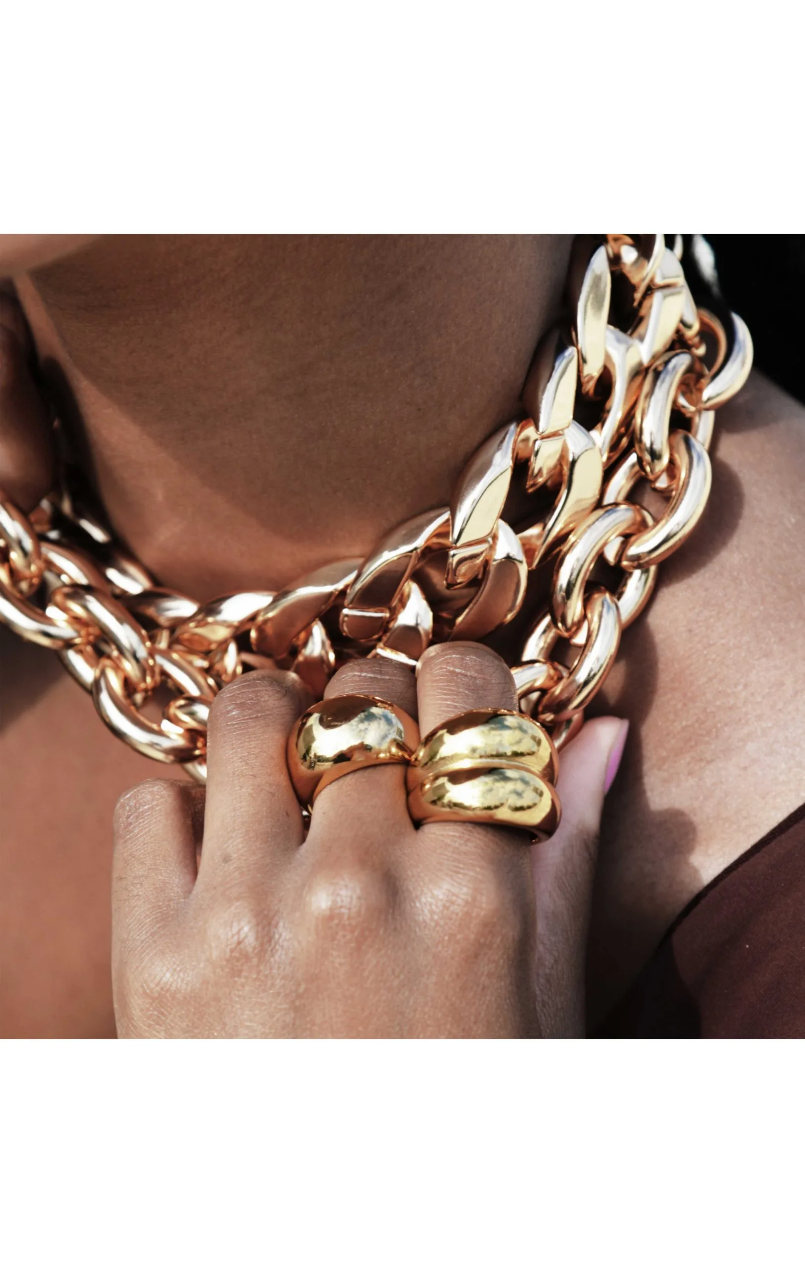 Vous aussi craquez pour cette bague imposante double jonc dorée en acier inoxydable. Sa forme XXL sera parfaite pour un look minimaliste de rigueur cette saison.