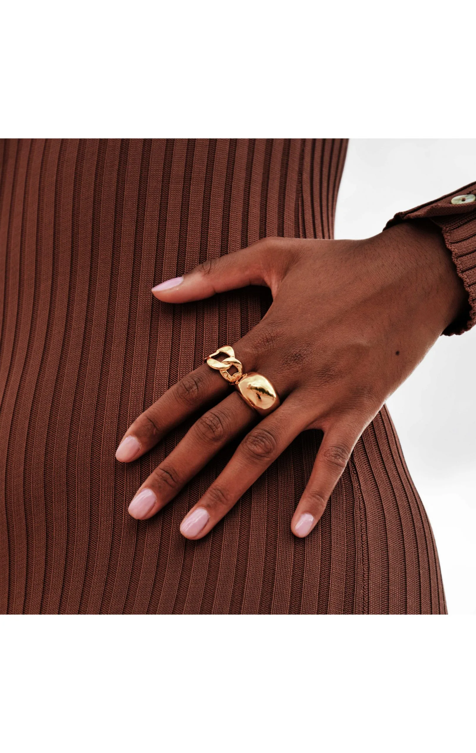 Adoptez le look maxi size avec cette bague dorée en acier inoxydable. On adore sa forme en chaîne très élégante.
