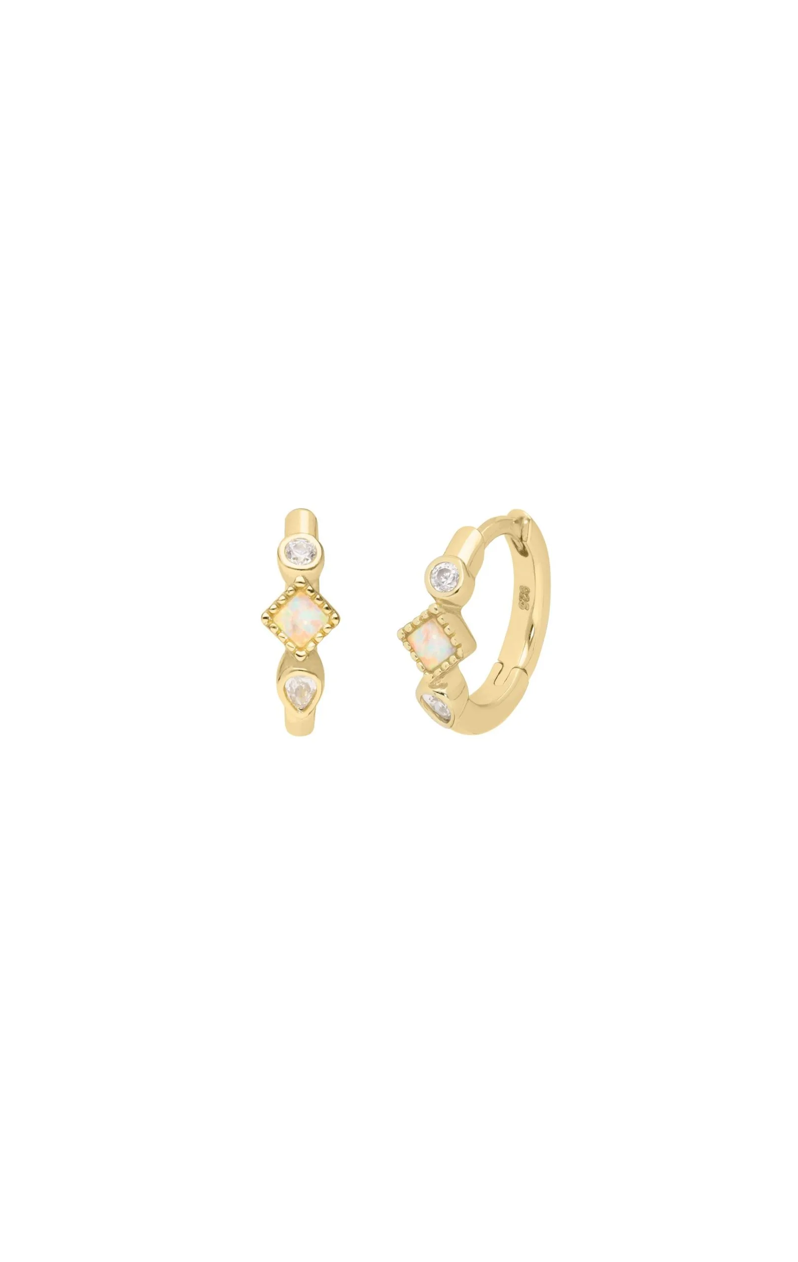 Mini-créoles avec totem strassé composé d’une pampille ronde en strass effet diamant, d’un losange en opale et d’une pierre marquise effet diamant. Ces très jolies boucles d’oreilles intemporelles sont l’occasion de découvrir les vertus magiques de l’opale, une pierre aux reflets arc-en-ciel multicolores. Doré à l’or fin 18 carats sur de argent 925 véritable, ce bijou en vermeil vous est garanti sans risque d’allergie.
