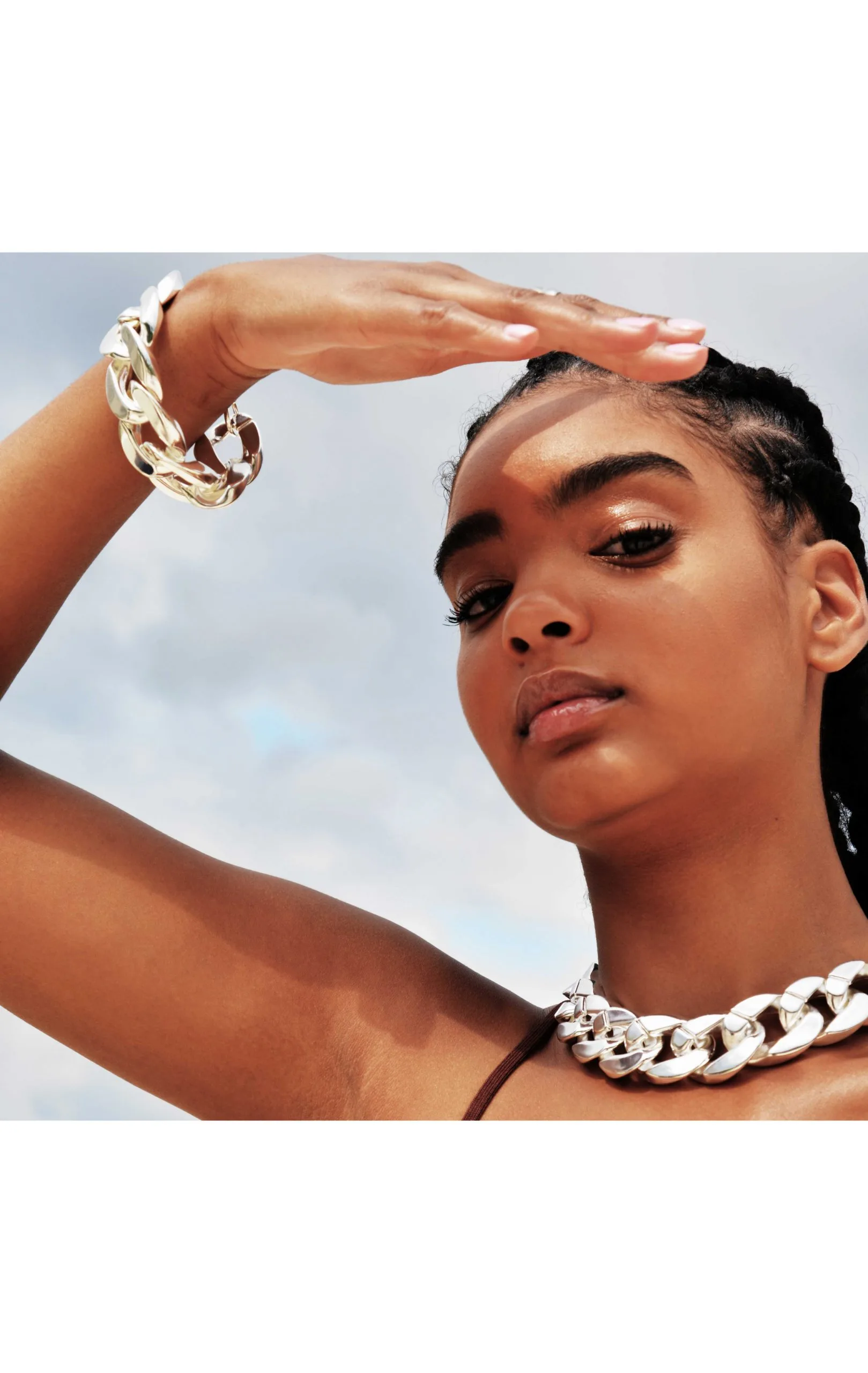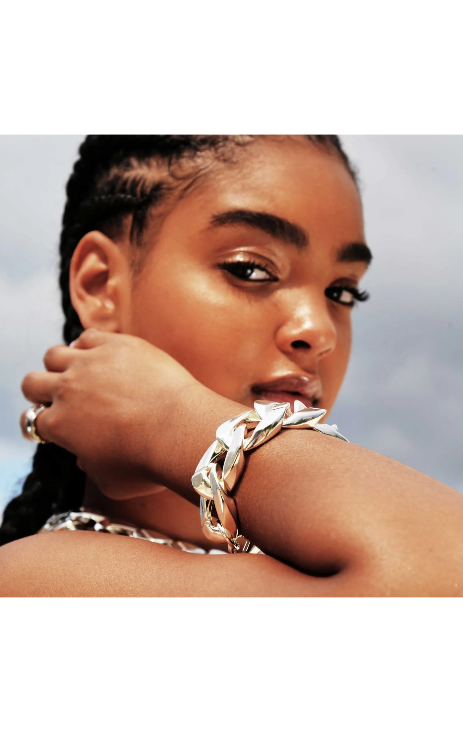 Osez le look XXL avec ce bracelet aux maillons oversize argentés. On adore ce look minimaliste, avec juste la présence d’un gros bijou au poignet. Cette maille gourmette revisitée version maxi est la tendance de la saison, alors n’attendez plus et vous aussi osez le bracelet de caractère que tout le monde convoitera.