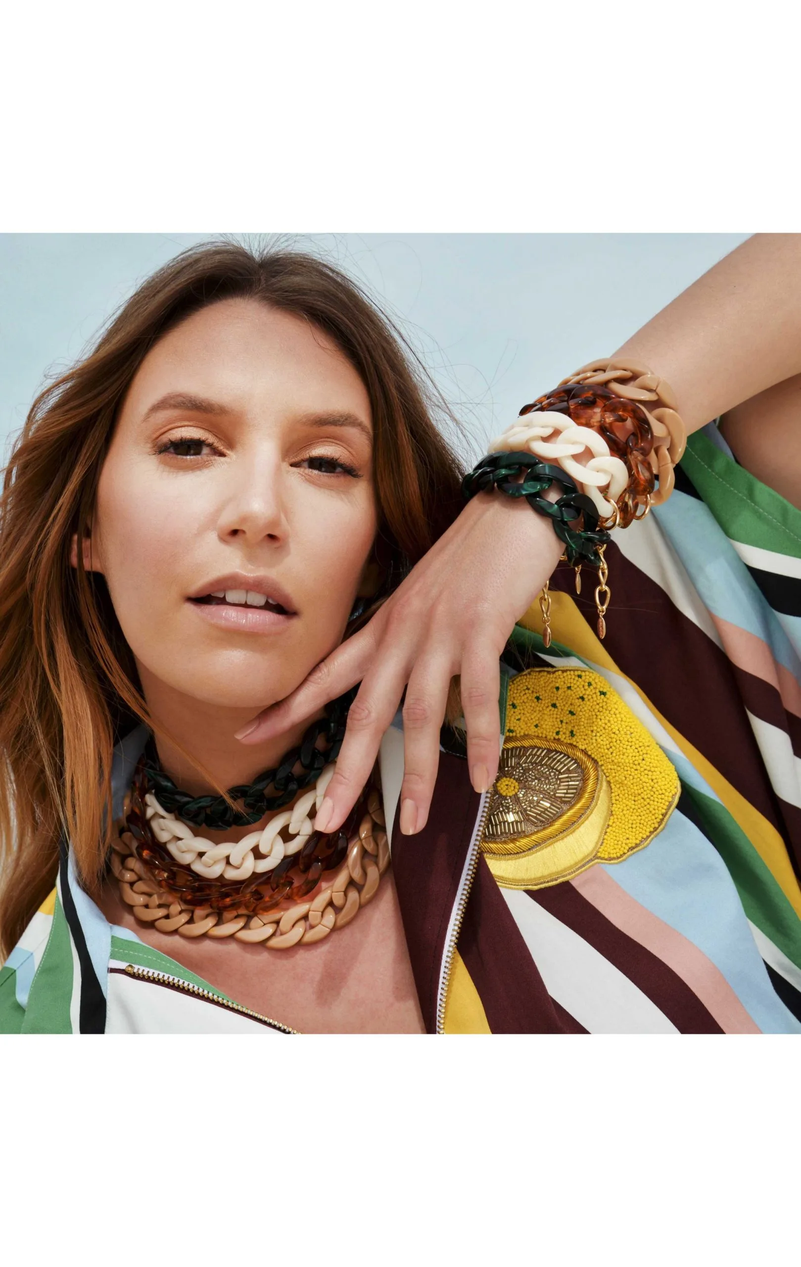 Osez le look XXL avec ce bracelet aux maillons en acrylique oversize colorés. On adore ce look minimaliste, avec juste la présence d’un gros bijou sur le poignet. Cette maille gourmette revisitée version maxi et colorée est la tendance de la saison, alors n’attendez plus et vous aussi osez le bracelet de caractère que tout le monde convoitera.