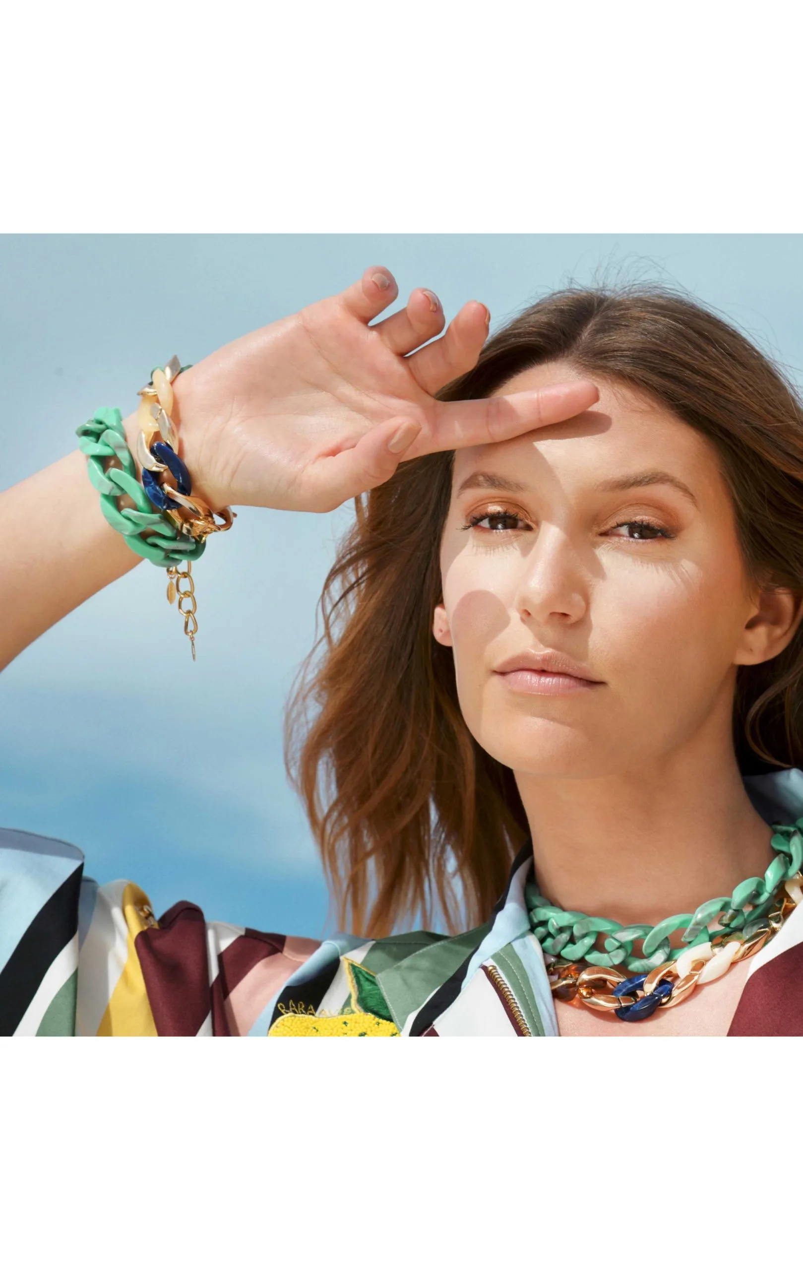 Osez le look XXL avec ce bracelet aux maillons en acrylique oversize colorés. On adore ce look minimaliste, avec juste la présence d’un gros bijou sur le poignet. Cette maille gourmette revisitée version maxi et colorée est la tendance de la saison, alors n’attendez plus et vous aussi osez le bracelet de caractère que tout le monde convoitera.