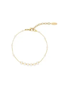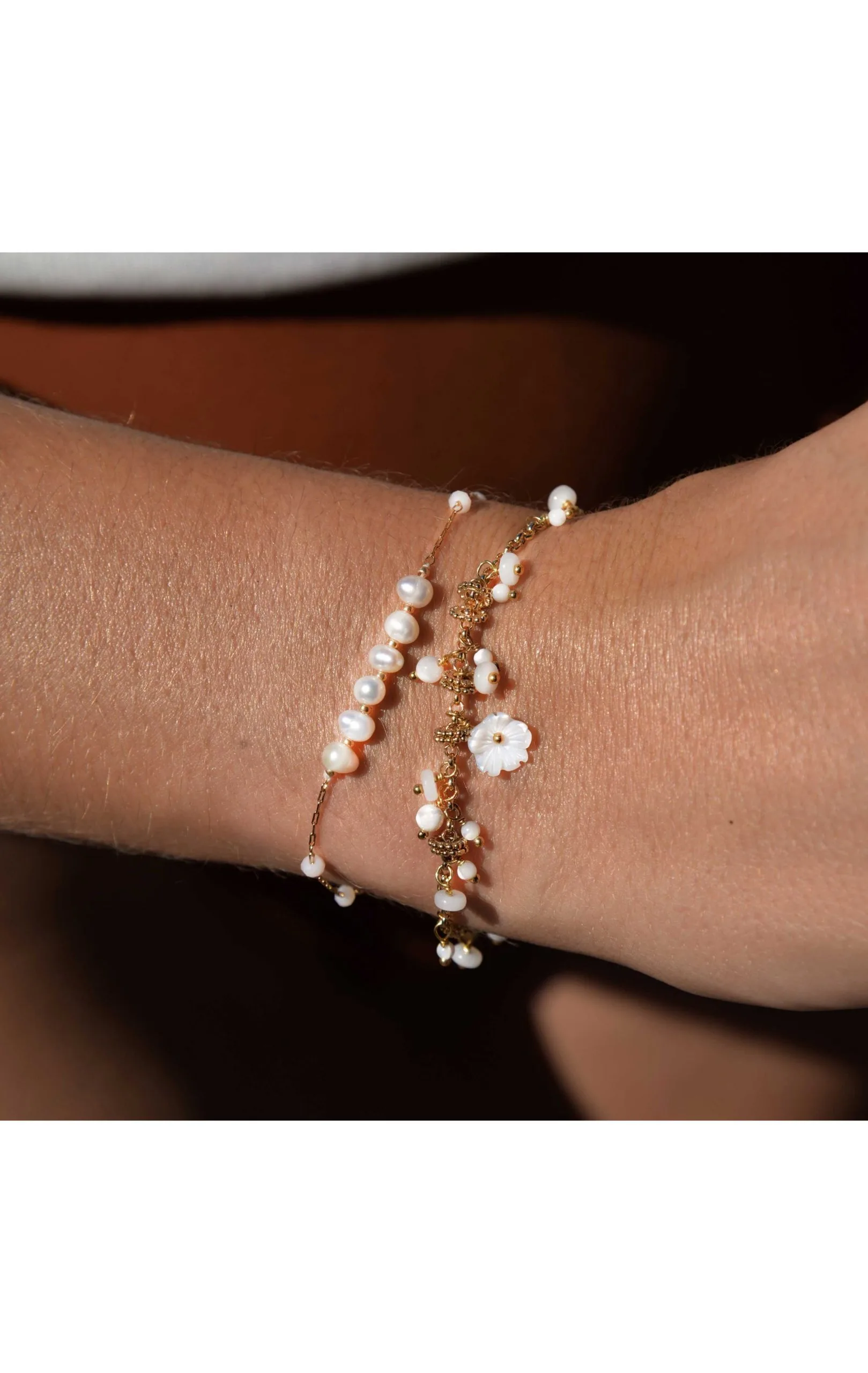 Adorable bracelet monté sur une chaîne chapelet dorée à l’or fin 18 carats. Au centre, des petites perles de culture naturelles irrégulières pour un aspect brut et unique. Le bijou fait à la main qui revisite l’élégance façon beachwear.