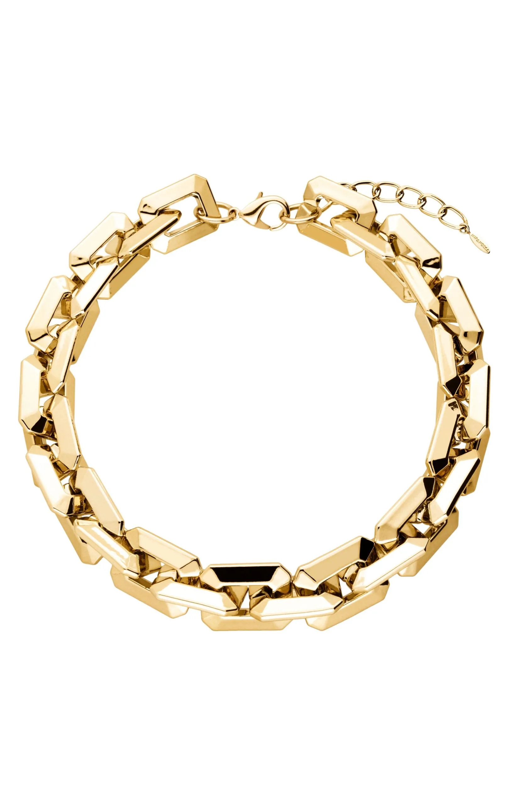 • Collier gros maillons rectangulaires gourmette en aluminium et CCB placage doré.