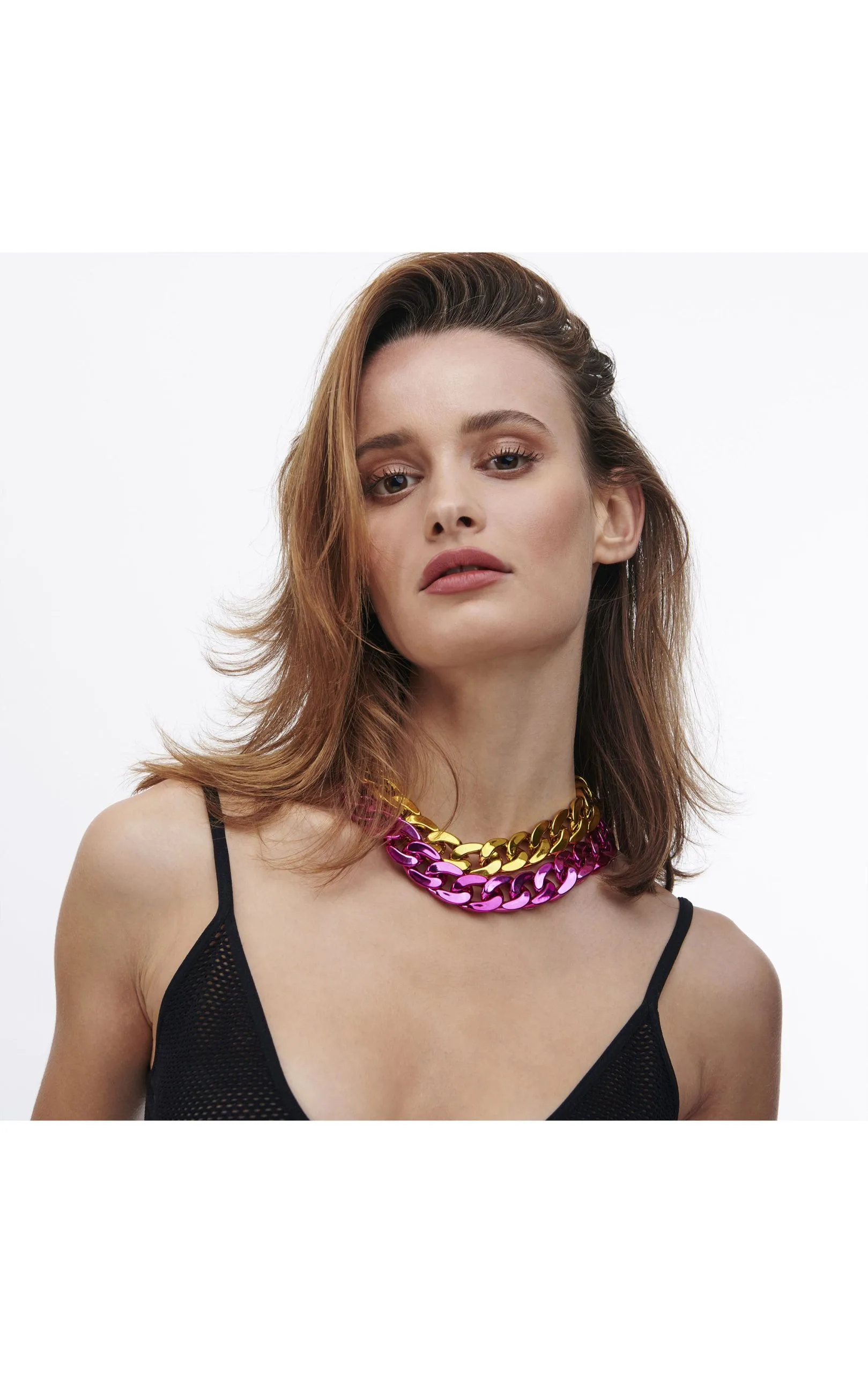 • Collier gros maillons gourmette en aluminium et CCB placage coloré.