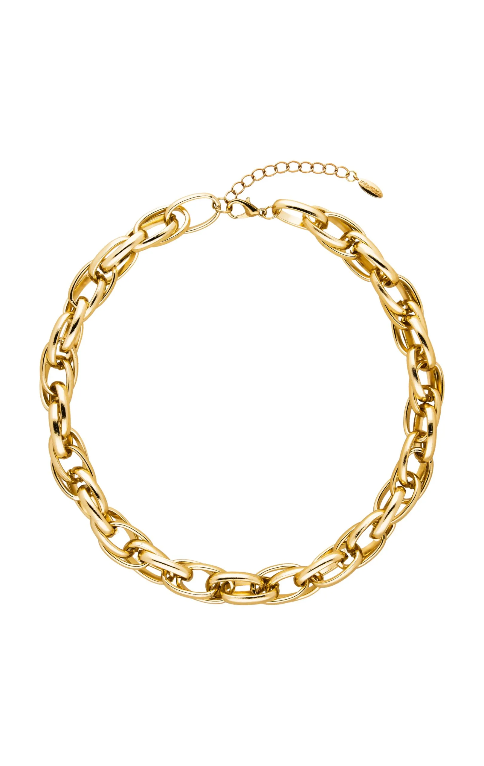 • Collier grosse maille entrelacée en aluminium placage doré.