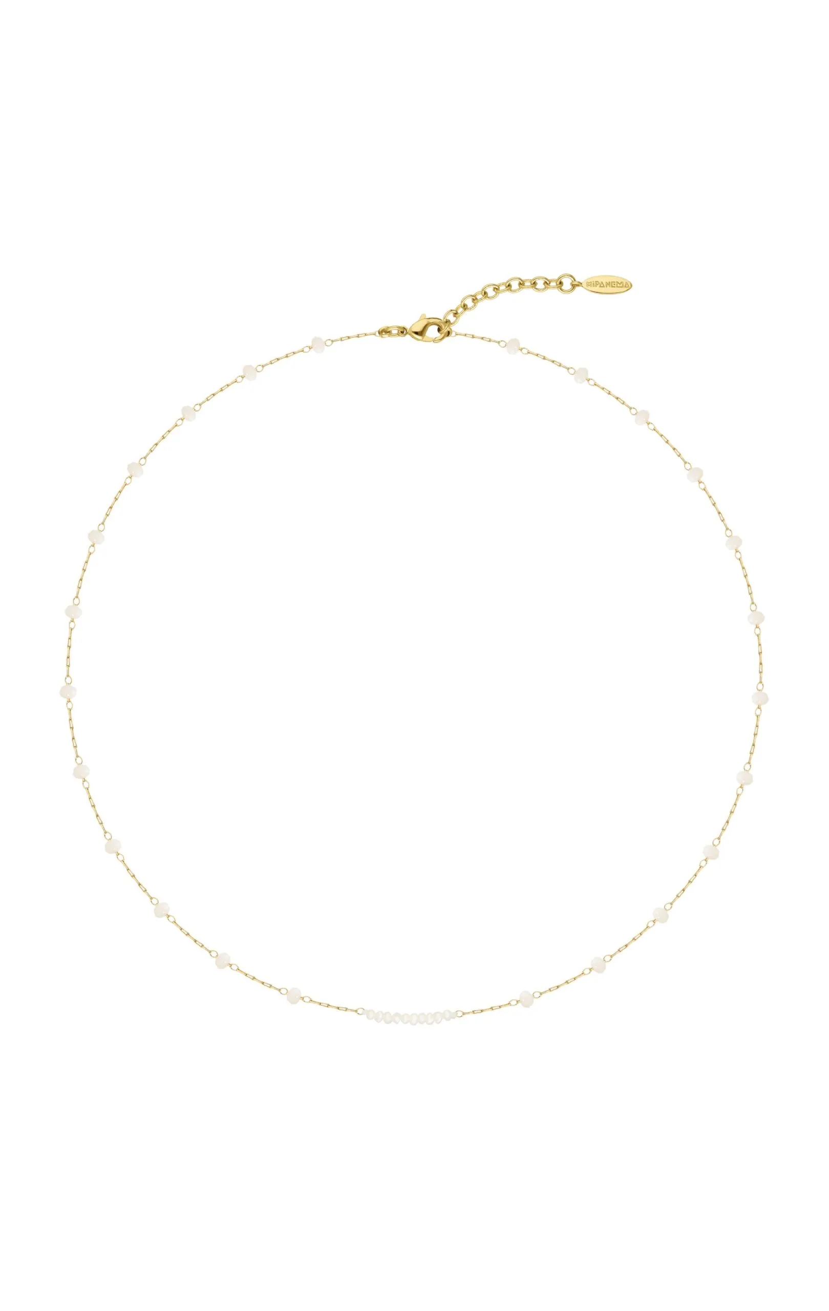 Collier ras de cou sur une chaîne chapelet, avec de ravissantes petites perles de culture irrégulières au centre. Ce très joli collier, à porter seul ou en accumulation, est une pièce aussi raffinée que romantique.